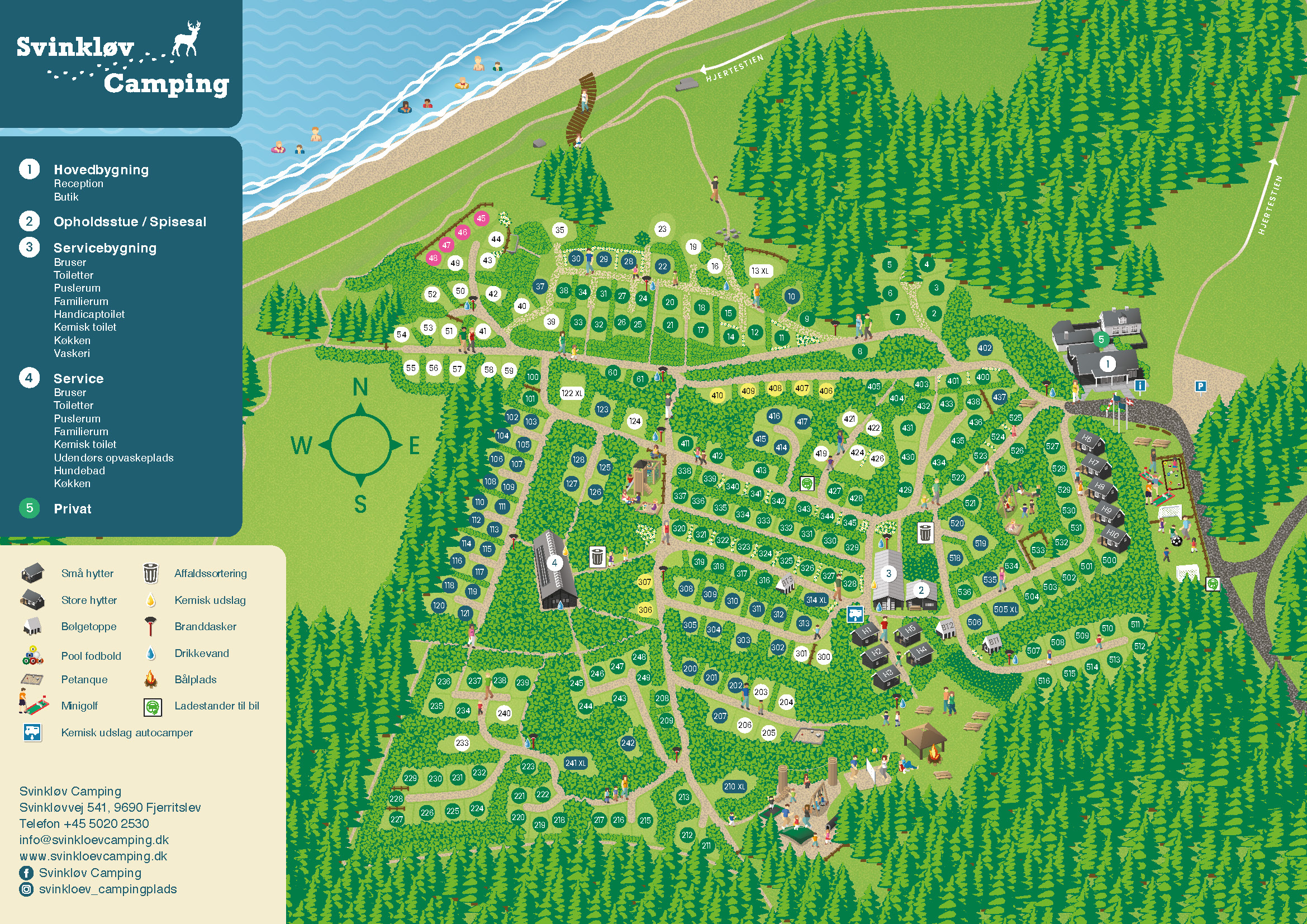 Svinkløv Camping er en perfekt beliggende campingplads midt i et stykke fantastisk natur og tæt på Vesterhavet. Her er fred og ro til at hvile, læse, lege, vandre, udforske, motionere, cykleture, samle bær, nødder og svampe i skovene, en gåtur i klitheden eller på stranden.
